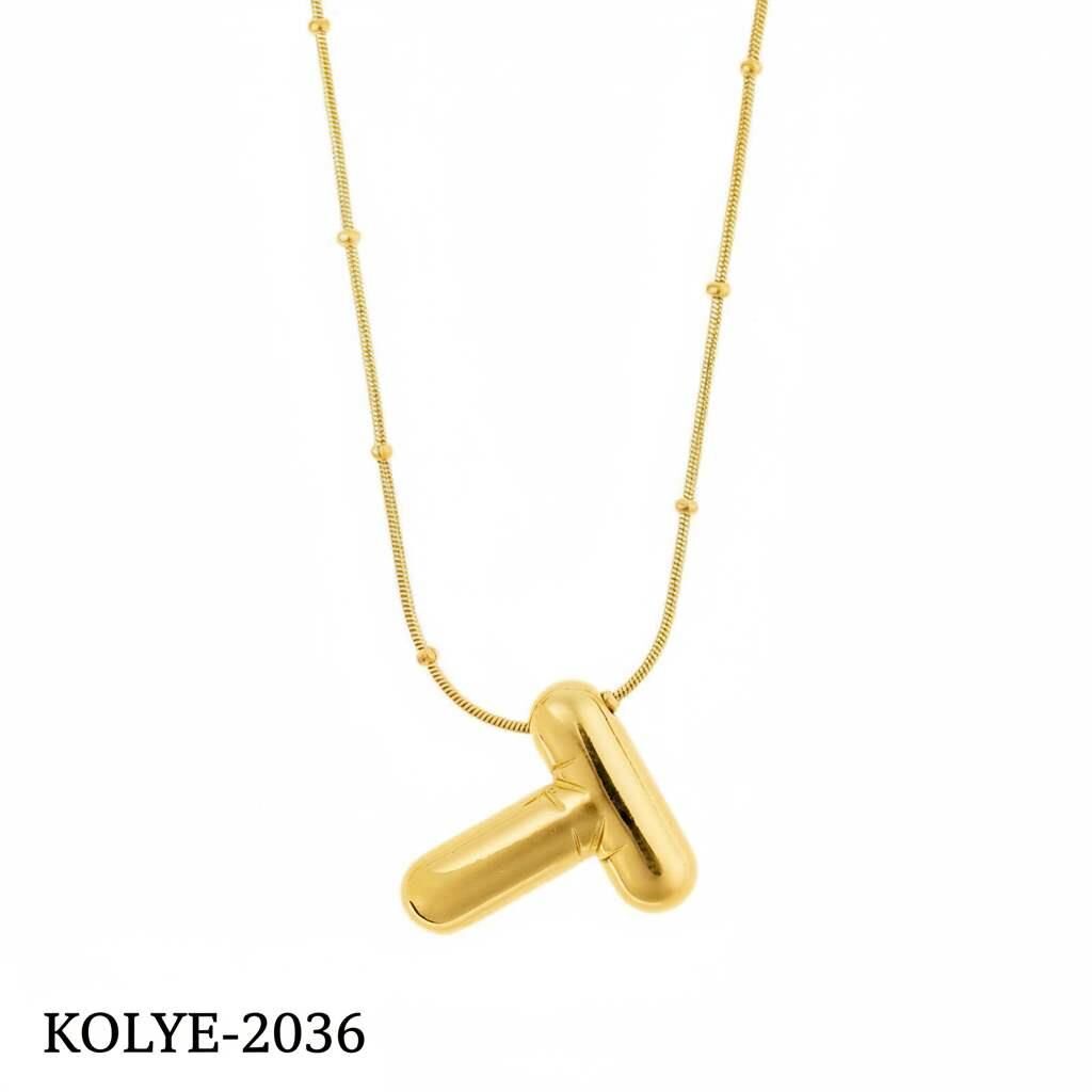 Çelik Balon Harf Kolye Gold (T) 45cm // KOLYE-2036