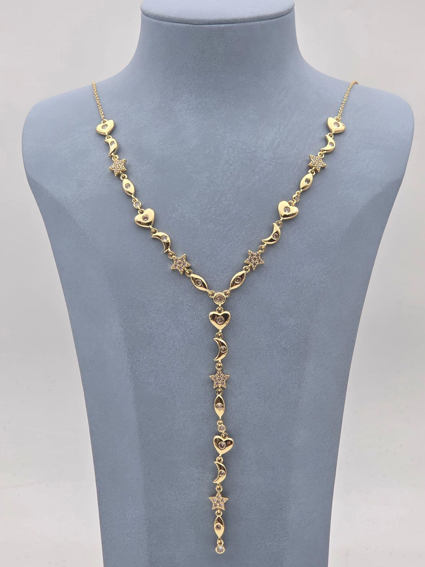 Çelik Kalp Ay Yıldız Motifli Y Kolye // KOLYE-5875