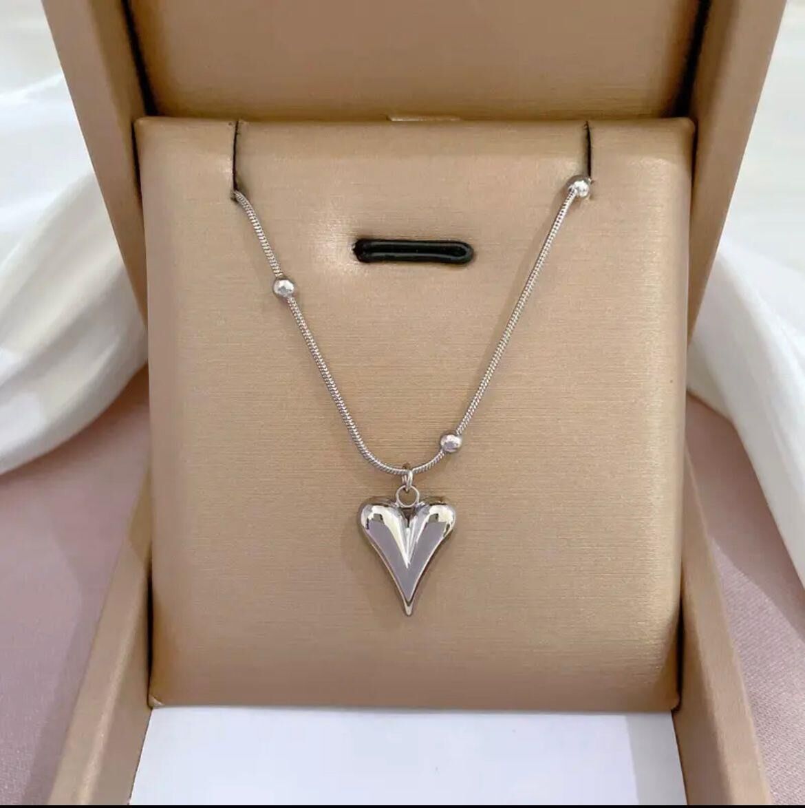 Çelik Sılver Dorikalı Kalp Kolye 45 cm