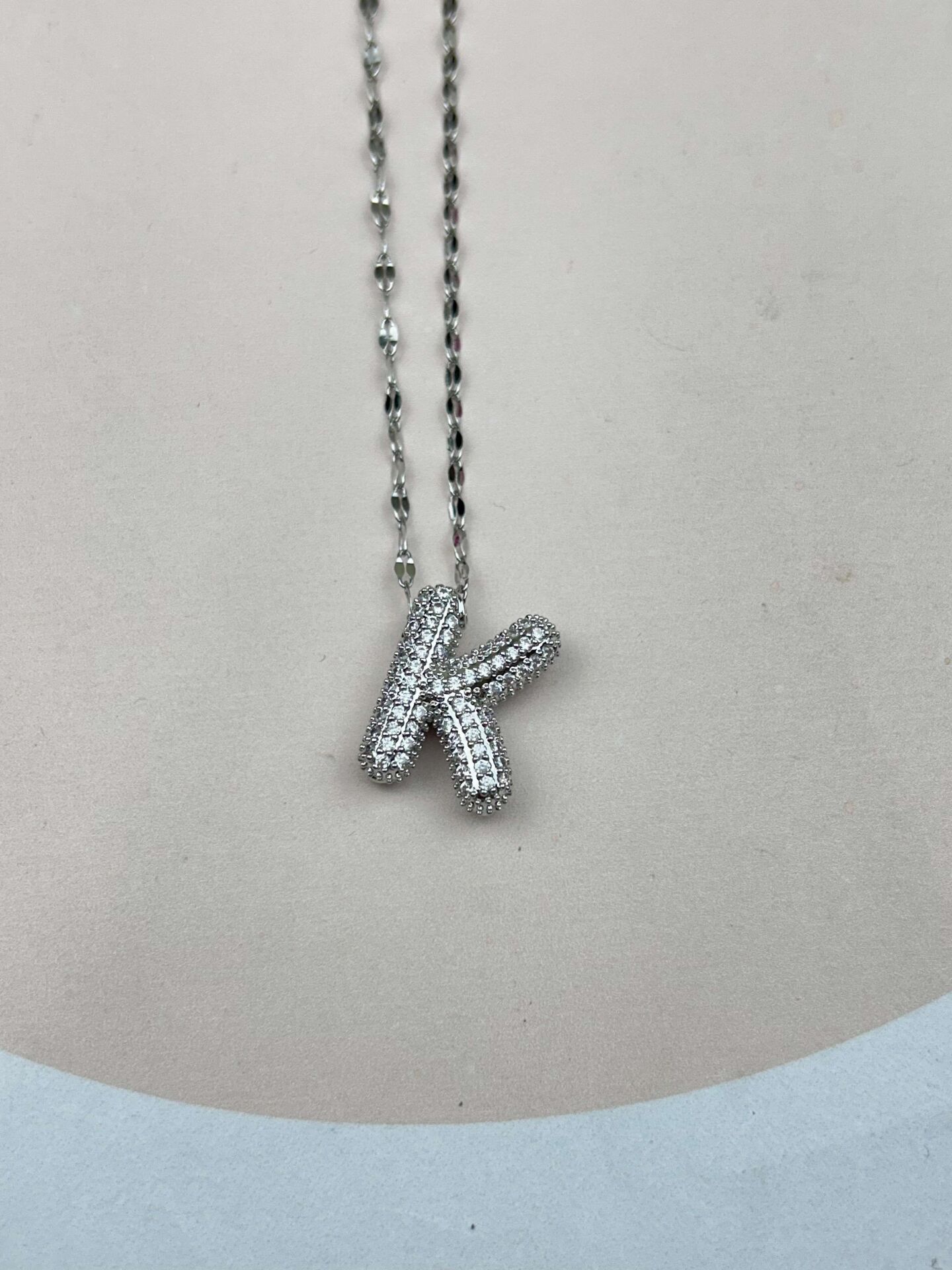 Çelik Silver Taşlı Balon Harf Kolye 45cm (K) // KOLYE-3567