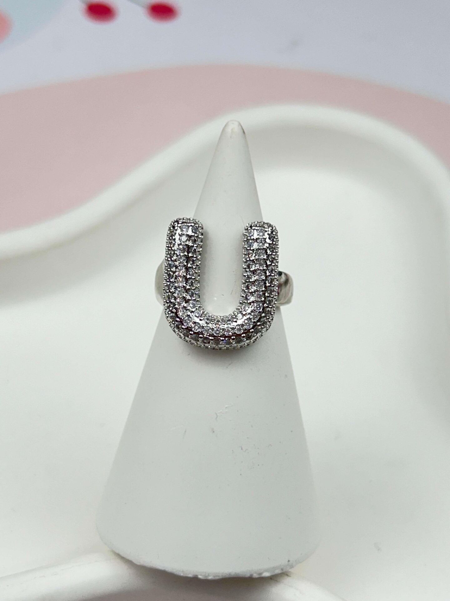 Çelik Taşlı Balon Harf Yüzük (Ayarlanabilir) // YÜZÜK-882