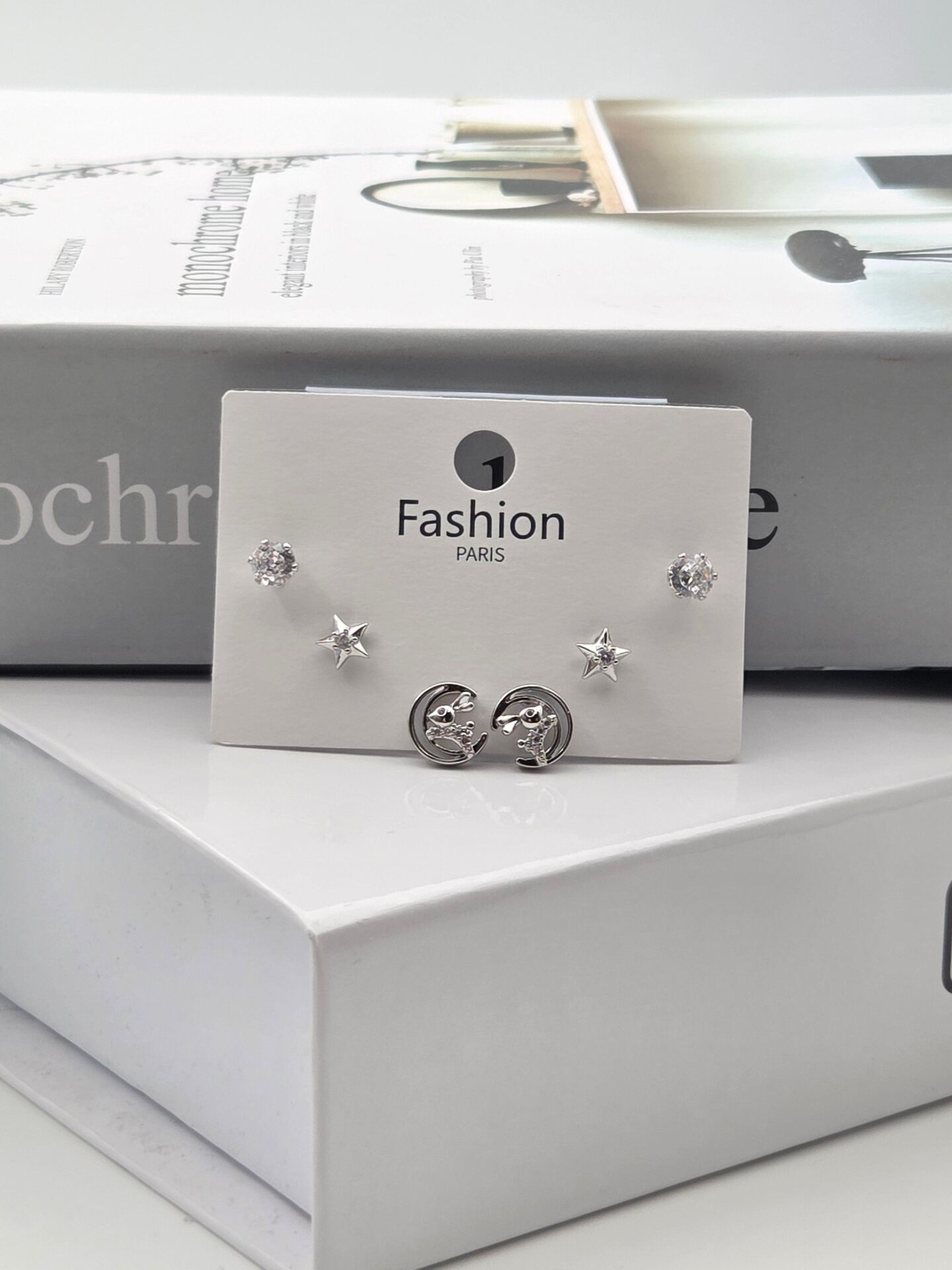 Zirkon Taşlı Gümüş İğne 6'lı Figür Küpe // ITHAL-3349