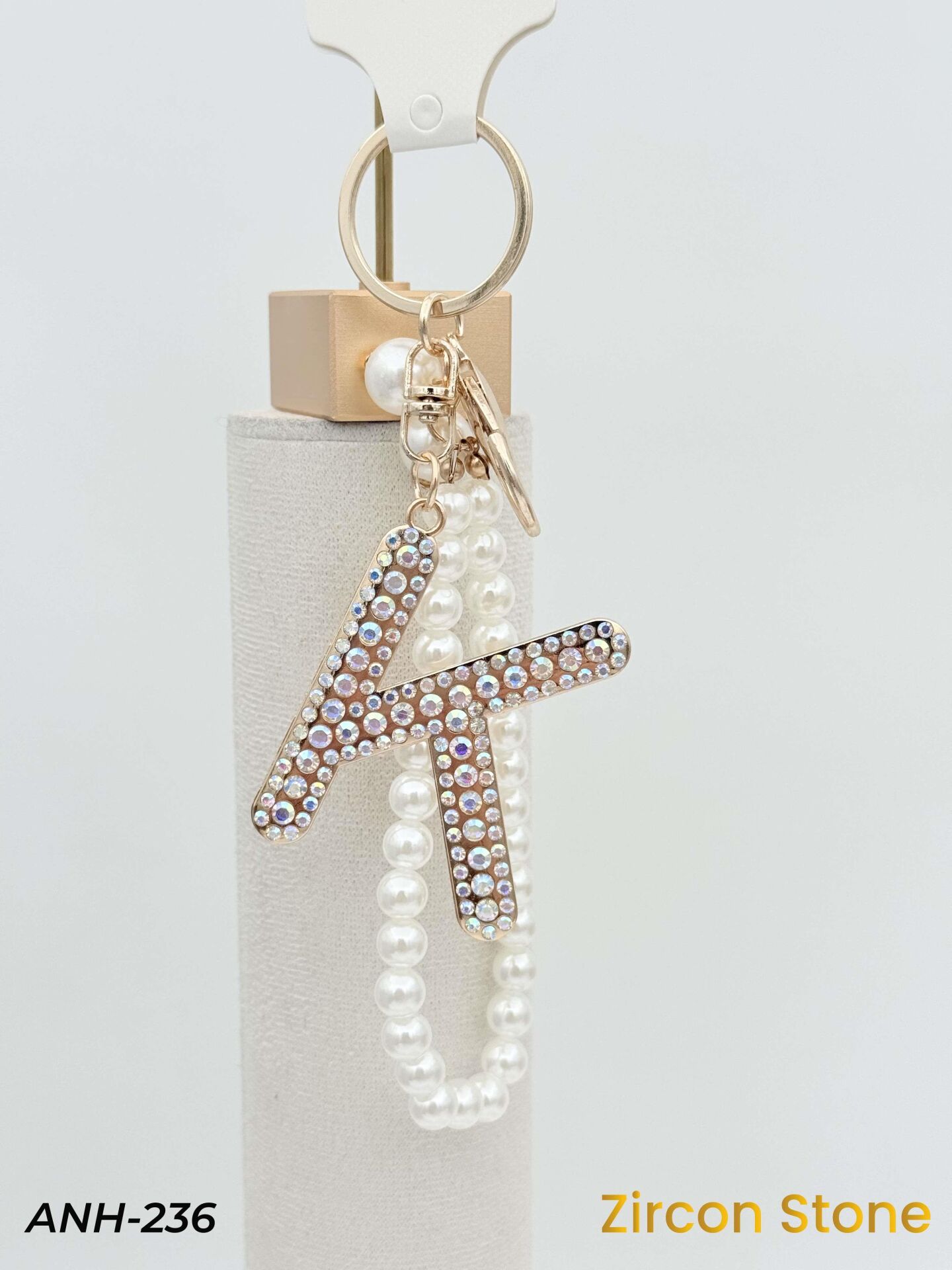 Zirkon Taşlı İncili Harf Anahtarlık-Çanta Charm // ANH-236