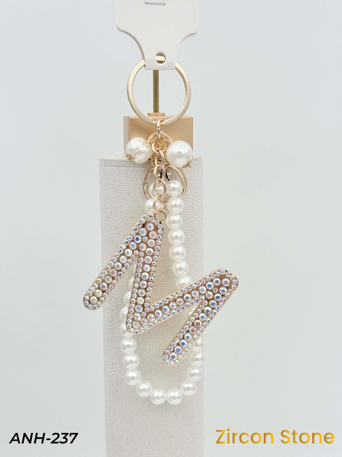 Zirkon Taşlı İncili Harf Anahtarlık-Çanta Charm // ANH-237